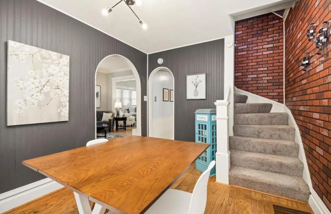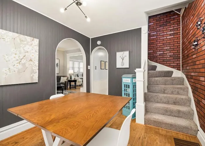Delicie-se com cozinha equipada fornecida na Retreat On Rouse Cozy 2Bd Bursting With Color Vila e completa com refrigerador, forno e utensílios de cozinha para sua conveniência. Os hóspedes têm a opção de jantar no Subway, que fica a 5 minutos de distância a pé.